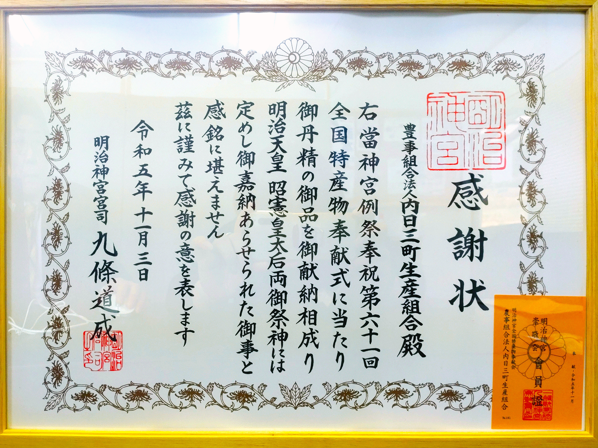 - 昨年の11月、明治神宮秋の大祭に当組合の「レンジアップごはん」を奉献いたしました。