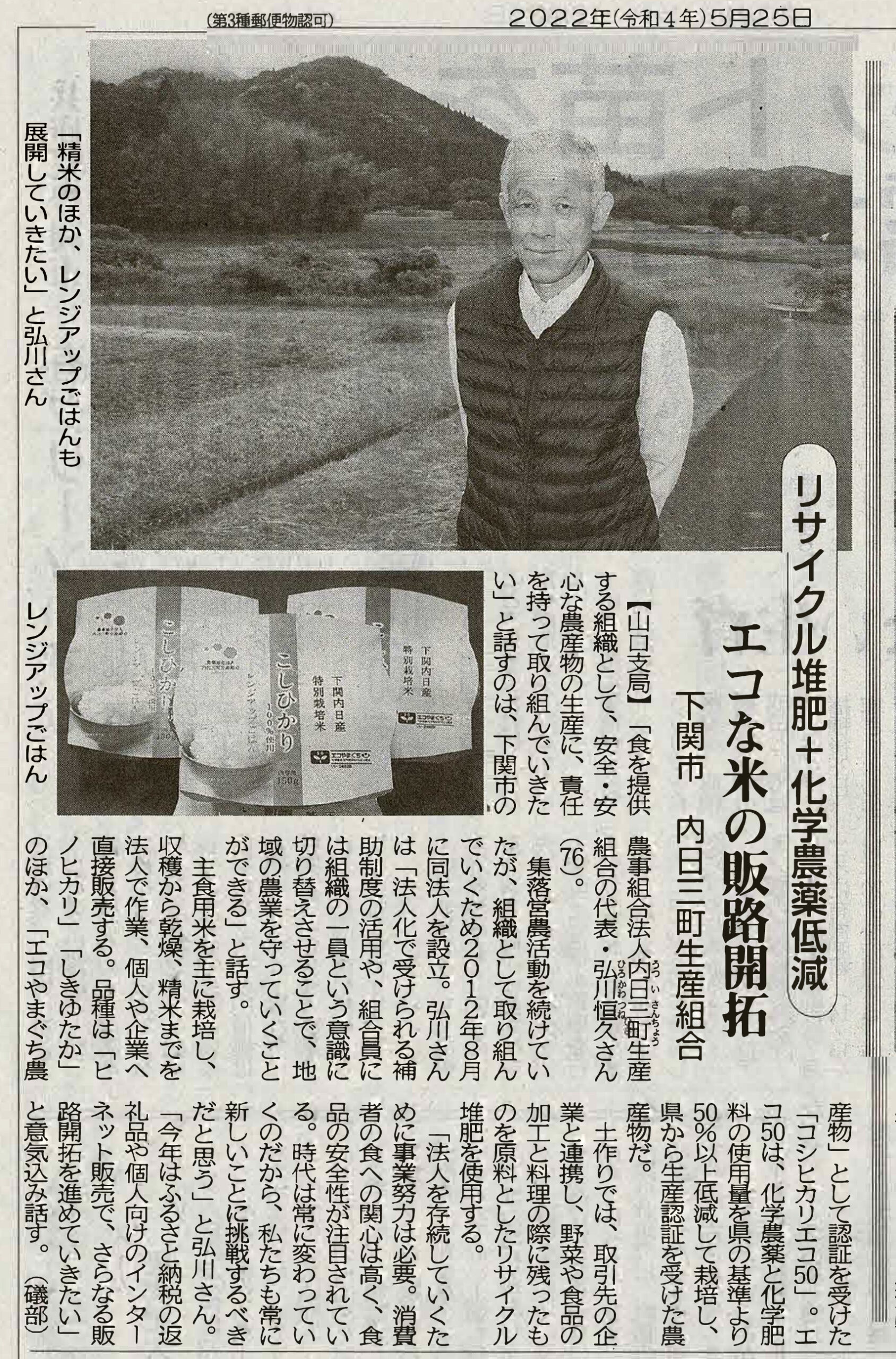 - レンジアップごはん(コシヒカリ エコ50使用)が山口グッと産品に商品登録されました。→ギャラリーは【こちら】